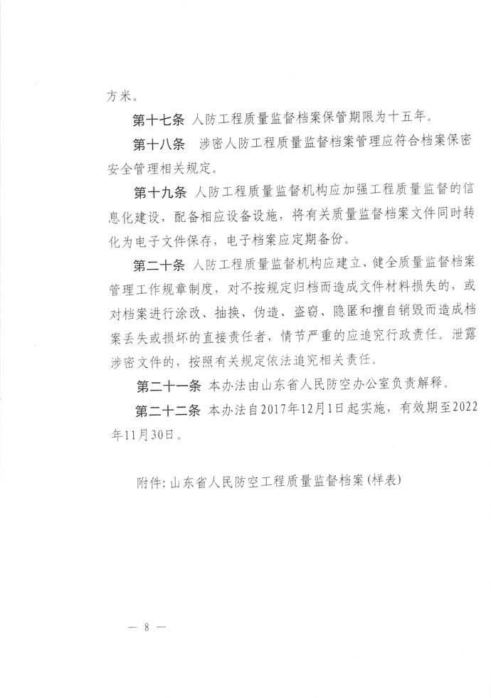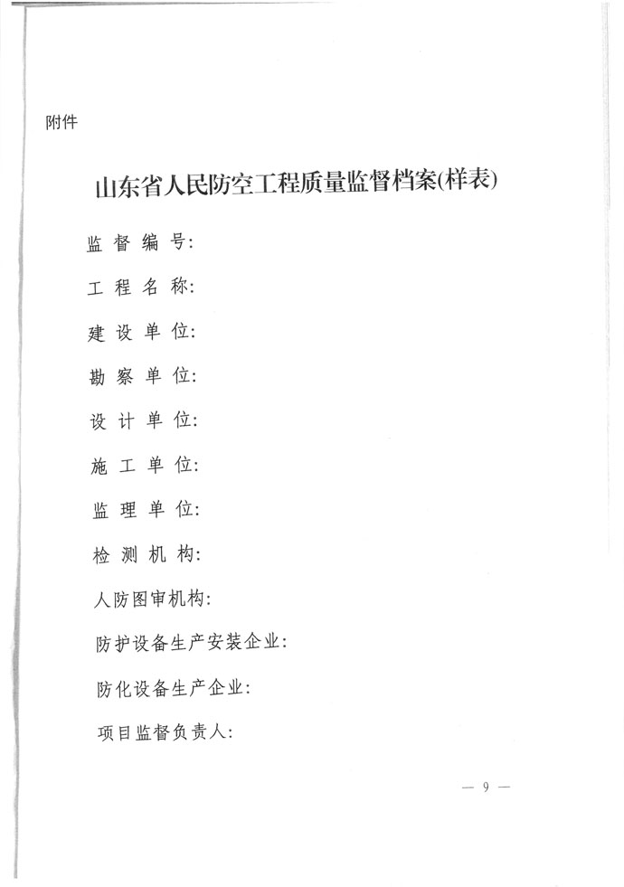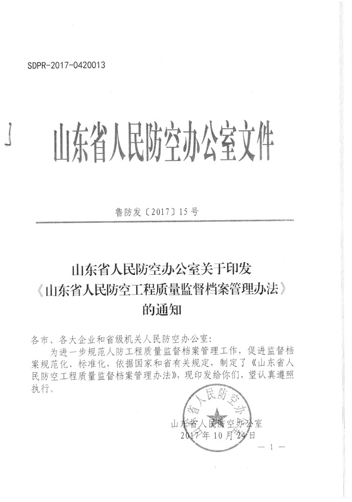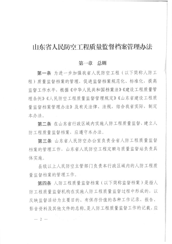 山东省人民防空办公室关于印发《山东省人民防空工程质量监督档案管理办法》的通知