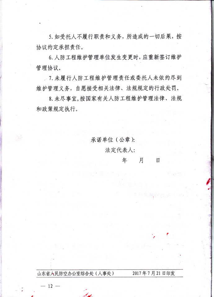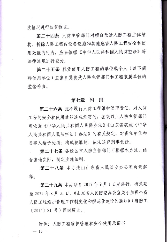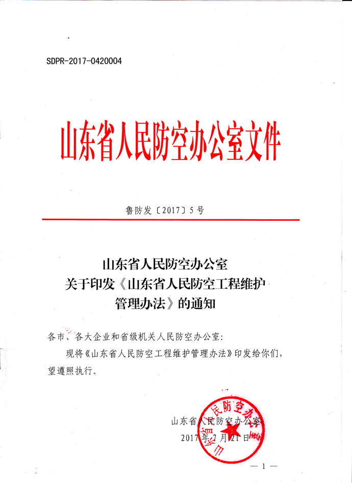 山东省人民防空办公室关于印发《山东省人民防空工程维护管理办法》的通知
