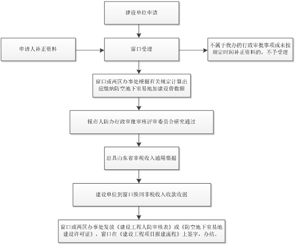 | (一)申请 1.提交方式 ①政务服务中心窗口提交。地址: 市政务服务中心一楼人防窗口(莱芜市龙潭东大街001号),联系电话:0634 - 6222323; 高新区行政服务大厅人防窗口,地址:高新区行政服务中心人防窗口,联系电话:0634-8867690。 ?莱芜市人民防空办公室莱城区办事处(莱芜市高新区莲花山路人防大厦1005室),联系电话:0634 – 6077005。 ③莱芜市人民防空办公室钢城区办事处(莱芜市规划局钢城分局5楼),联系电话:0634 – 6885618。 ④信函接收。莱芜市政务服务中心人防窗口,地址:市政务服务中心一楼人防窗口(莱芜市龙潭东大街001号)。 ⑤网络提交。http:∥www.lwxzfw.gov.cn 。 2.获取收件编号 ①申请人在窗口提交申请时,窗口工作人员在通过政务服务中心内网系统录入信息时,即可获得编号。 ?申请人通过信函提交申请的,窗口人员在通过政务服务中心内网系统录入信息时,即可获得编号并以电话或手机短信形式告知申请人。 ③申请人通过网络提交申请的,在窗口工作人员通过政务服务中心内网系统点击“预审通过”后,申请人即可通过外网获取受理编号及密码。网址:http:∥www.lwxzfw.gov.cn 3.获取收件凭证 ①申请人当面申请的。经审核,对材料齐全、填写无误、符合法定形式的材料出具材料接收凭证。 ?申请人通过信函提交申请的,材料受理凭证以电子邮件的方式发送给申请人。 ③申请人通过网络提交申请的。申请人可通过登录 http:∥www.lwxzfw.gov.cn 下载材料受理凭证。 (二)受理 1.补正材料。 ①申请人材料不齐全或者不符合法定形式的,允许当场补正或在规定期限内予以补正;并明确一次性告知所需补正材料或制作补正材料通知书,列明需补正的材料内容、补正期限,并加盖人防部门专用印章。逾期不出具补正材料通知书的,即为申请已被受理;申请人逾期不补正的,作退件处理。 ②属于网上受理的,受理人发现申请材料不齐全或不符合法定形式的,做出补正材料通知单,列明需补正的材料内容、补正期限以及逾期不补正做退件处理的规定,由窗口人员以电话或手机短信形式告知申请人通过登录http:∥www.lwxzfw.gov.cn进行下载。 2、获取受理(不予受理)凭证。 凭证的获取方式同补正材料的方式。 (三)办理进程查询 1、市政务服务中心一楼人防窗口(莱芜市龙潭东大街001号),电话咨询号码:0634–6222323。 2、莱芜市人民防空办公室莱城区办事处(莱芜市高新区莲花山路人防大厦1005室),电话咨询号码:0634–6077005。 3、莱芜市人民防空办公室钢城区办事处(莱芜市规划局钢城分局5楼),电话咨询号码:0634–6885618。 4、网络查询网址:http:∥www.lwxzfw.gov.cn 查询步骤:①进入莱芜市政务服务中心网站http:∥www.lwxzfw.gov.cn ?在首页找到“办件查询”窗口(输入受理编号及受理密码)或“办件公示”栏(滚动字幕实时显示审批动态,内容包括:受理部门、受理事项、缴费状态、申报日期、完成时间、办件状态等)均可适时查询办件进程。 (四)获取审批决定书 1.获取方式:窗口或两区办事处领取。 2.决定书类型:核发《防空地下室易地建设许可证》 |